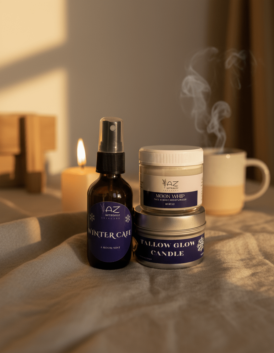 Moon Whip Moisturizer – A deeply hydrating tallow-based whip that nourishes skin, leaving it soft, radiant, and replenished through the dry winter months.